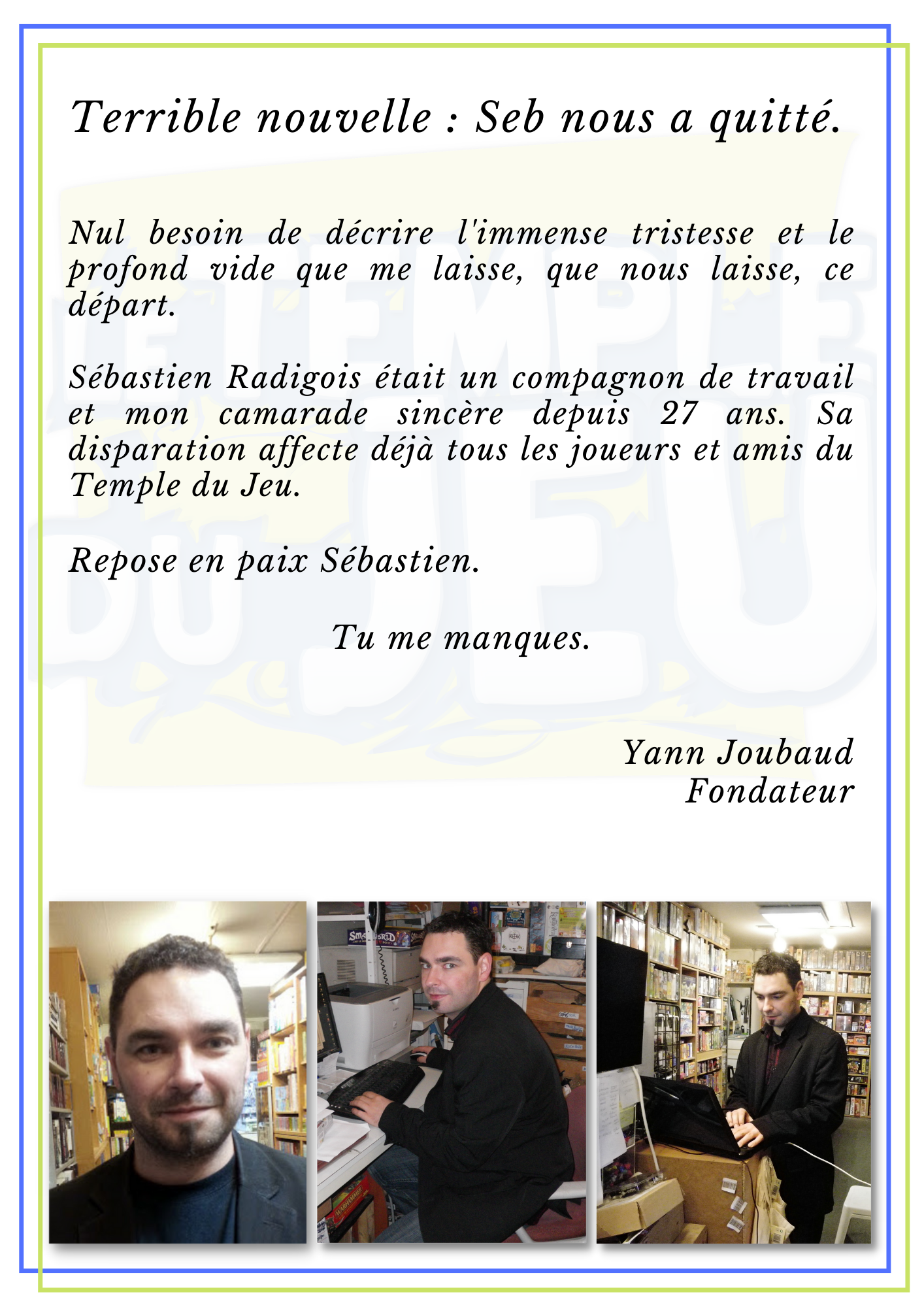 Nous avons été navrés d'apprendre le décès d'une personne qui a été un des piliers du Temple du Jeu pendant quelques années.