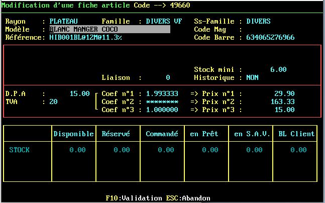 Se placer dans la fiche produit sélectionnée [Alt+F5]