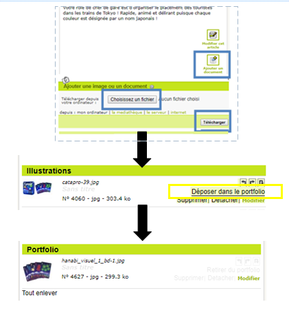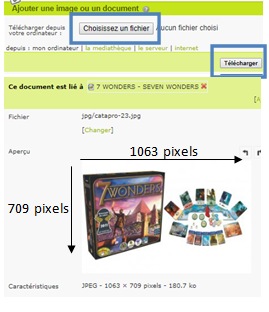 Pour ajouter la deuxième photo, vous devez vous rendre en bas de la fiche produit et cliquez sur "Ajouter un document". Ajoutez la photo du contenu de la boite de jeu ( rappel : photo éditeur en priorité). Puis, pensez à TÉLÉCHARGER la photo que vous avez sélectionnée. Ensuite, déposez la dans le portfolio en cliquant sur "Déposer dans le portfolio".