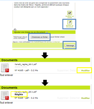 Toujours au même endroit, rajouter ensuite le document des règles en PDF que vous trouverez aussi sur les sites internet des éditeurs. Faites bien attention à ne joindre, que des règles éditeurs, et non un copié-collé des règles sur Word ou avec le logo d’une autre enseigne.