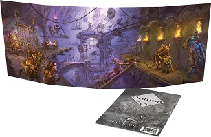 L’écran, en carton rigide, 4 volets portrait, est magnifiquement illustré par Thierry Ségur. Il contient côté MJ toutes les tables nécessaires au bon déroulement d’une partie et plus encore. Il est accompagné d’un livret de 20 pages comportant trois aventures exclusives pour des personnages débutants.