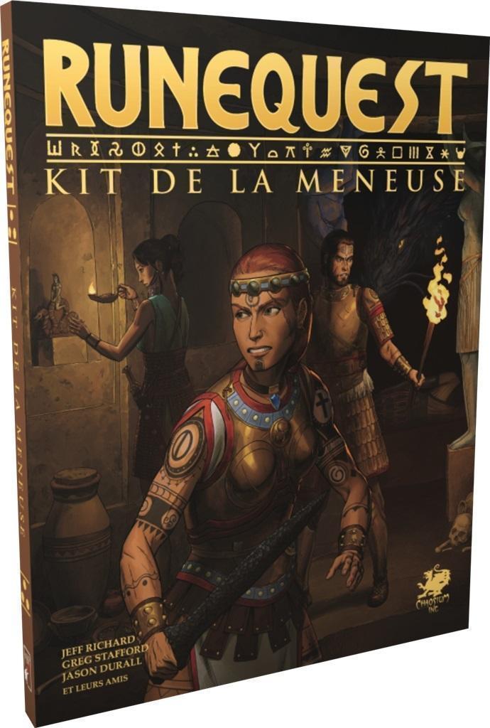 Ce Kit de la meneuse fournit les références et les outils nécessaires pour mener une campagne de Runequest : Aventures dans Glorantha. Il contient un écran épais en quatre volets au format paysage, avec côté joueurs une superbe illustration tirée du monde de Glorantha. Il est accompagné d’un livre de 124 pages présentant la tribu Colymar et le hameau du Sentier de la Pomme, trois aventures prêtes à jouer et de nombreuses accroches pour en imaginer d’autres ; d’un livret de référence de 20 pages regroupant les tables les plus importantes ; d’un calendrier gloranthien où apparaissent les saisons et les jours saints des diverses divinités ; des cartes de la Passe du Dragon, du sud de Péloria,des terres tribales des Colymar, de Fort Vinclair etdu Sentier de la Pomme ; d’aventuriers pré-tirés parés pour l’aventure, etc.