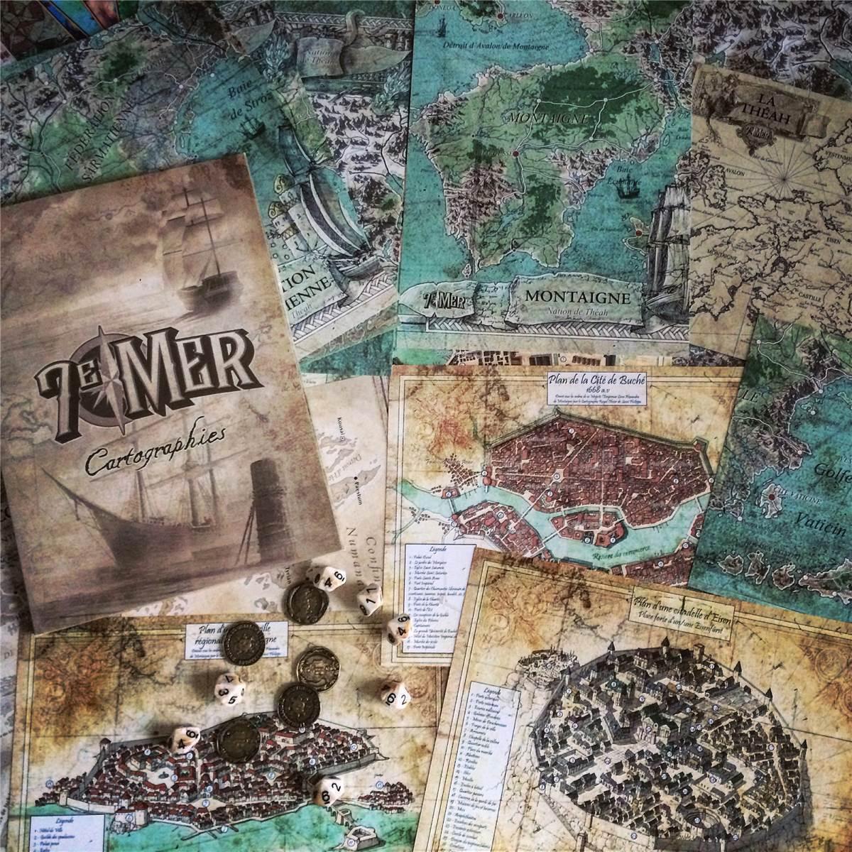 • Un set de 18 cartographies avec les 8 Nations, la mer Atabéenne, la Bucca, la Numa, deux cartes de la Théah dont une version par Olivier ’Akae’ Sanfilippo et cinq cartes de villes et villages théans.