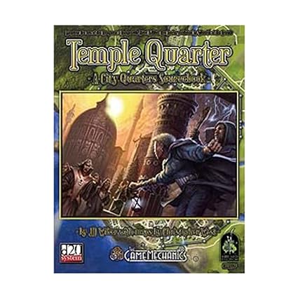 The second book in the City Quarter series from The Game Mechanics (Modern Player’s Companion, Artifacts of the Ages), details the people, places, and plots of the fantasy city of Liberty, first seen in the ENnie-nominated Thieves’ Quarter sourcebook. Temple Quarter presents several new religions, their temples, their priests and priestesses, and their ceremonies and rituals - as well as their more secular goals... and their political intrigues. Modular in design, Temple Quarter can be adapted wholesale to any city in any fantasy campaign, or Gamemasters can cherry-pick whatever they need, whenever they need it. With lushly illustrated maps by Christopher West, dozens of fully developed NPCs, and extensive encounter tables loaded with adventure hooks, Temple Quarter is a ready-made mini-setting designed to be dropped into nearly any d20 fantasy campaign at a moment’s notice. Future City Quarters volumes will include Arcane Quarter, Noble District, Mercenaries’ Quarter, Palace District, and the Outlands.