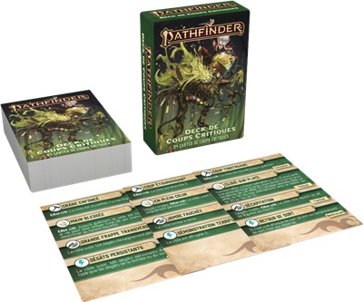 Des fois, ça ne suffit pas de doubler les dégâts ! Pourquoi vous limiter alors que vous pouvez décapiter votre ennemi ou le faire flamber avec une déflagration magique ? Avec le deck de coups critiques Pathfinder, vous tirez une carte et appliquez l’un de ses quatre effets lorsque vous réussissez un coup critique. L’élimination de vos ennemis n’a jamais été aussi sanglante... ou aussi marrante !