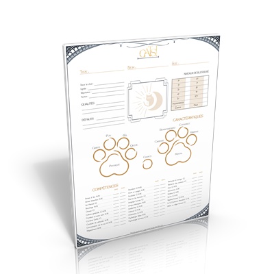 Ce bloc contient 20 feuilles de personnage couleur à utiliser pour vos parties de Cats ! La mascarade.