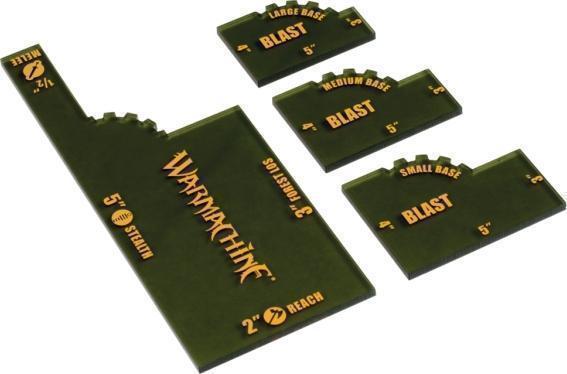 Le set d’outils de mesure officiel pour WARMACHINE (PIP 91085) comprend un outil de mesures multiples, un outil de mesure de dégâts d’explosion pour petits, moyens et grands socles. Vous pouvez utiliser ces outils de mesure pour établir avec précision les distances de corps à corps, la distance qui vous sépare d’une cible furtive, les lignes de vue à travers la forêt et les dégâts d’explosion autour des figurines directement touchées.