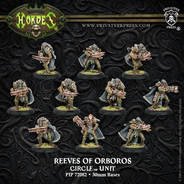 Recrutés parmi les campements à la frontière du monde sauvage, les Wolves of Orboros servent volontairement le Cercle. Chaque membre est un combattant et un forestier accompli entraîné à porter une lance lourde avec maîtrise et fluidité. Ceux qui deviennent des Reeves préfèrent les arbalètes doubles avec lesquelles ils trouvent des angles d’attaque mortels même dans les buissons les plus denses.