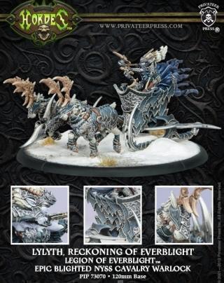 Ceux qui s’opposent à Everblight doivent être prêts à payer un lourd tribut et c’est Lylyth qui vient relever les compteurs. Les rares survivants de ses raids parlent des susurrements des coureurs sur le sol gelé et de bruits tels des mélopées funèbres. Alors que les premières flèches s’abattent ce bruit se révèle être le vent dans les pointes barbelées des flèches et les lames métalliques du traineau tirés par de puissants rennes dont les bois sont prêts à transpercer quiconque sur leur passage.
