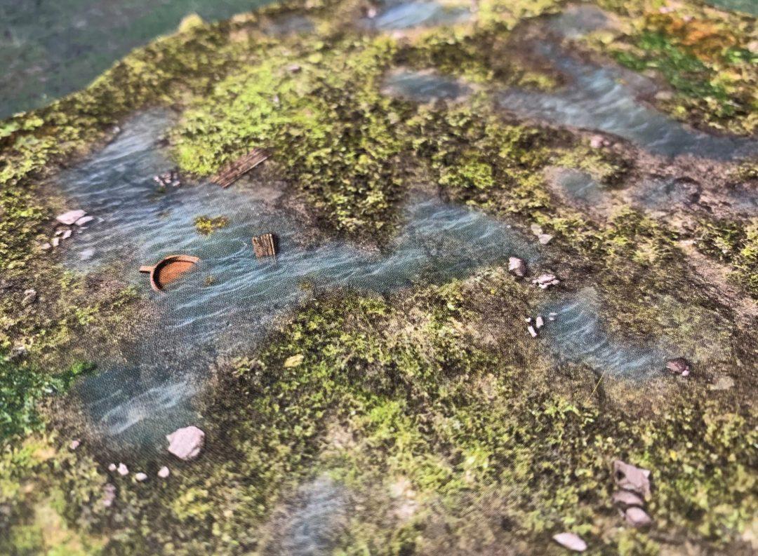 Ces décors améliore votre table de jeu avec un grand lac et deux petits étangs, que vous pouvez les retourner pour créer des marécages pour ralentir vos troupes. L’ensemble comprend des pièces pour relier le lac à une rivière, ainsi qu’un terrain de dispersion utile pour ajouter de l’immersion à votre plateau de jeu. Les pièces sont compatibles avec le reste de la gamme Battle Systems Fantasy. Le décors est fourni imprimé à plat sur un carton de haute qualité et densité, en couleur des deux côtés, donc aucune peinture requise ! Le terrain nécessite un assemblage et certaines pièces plus petites nécessiteront de la colle.