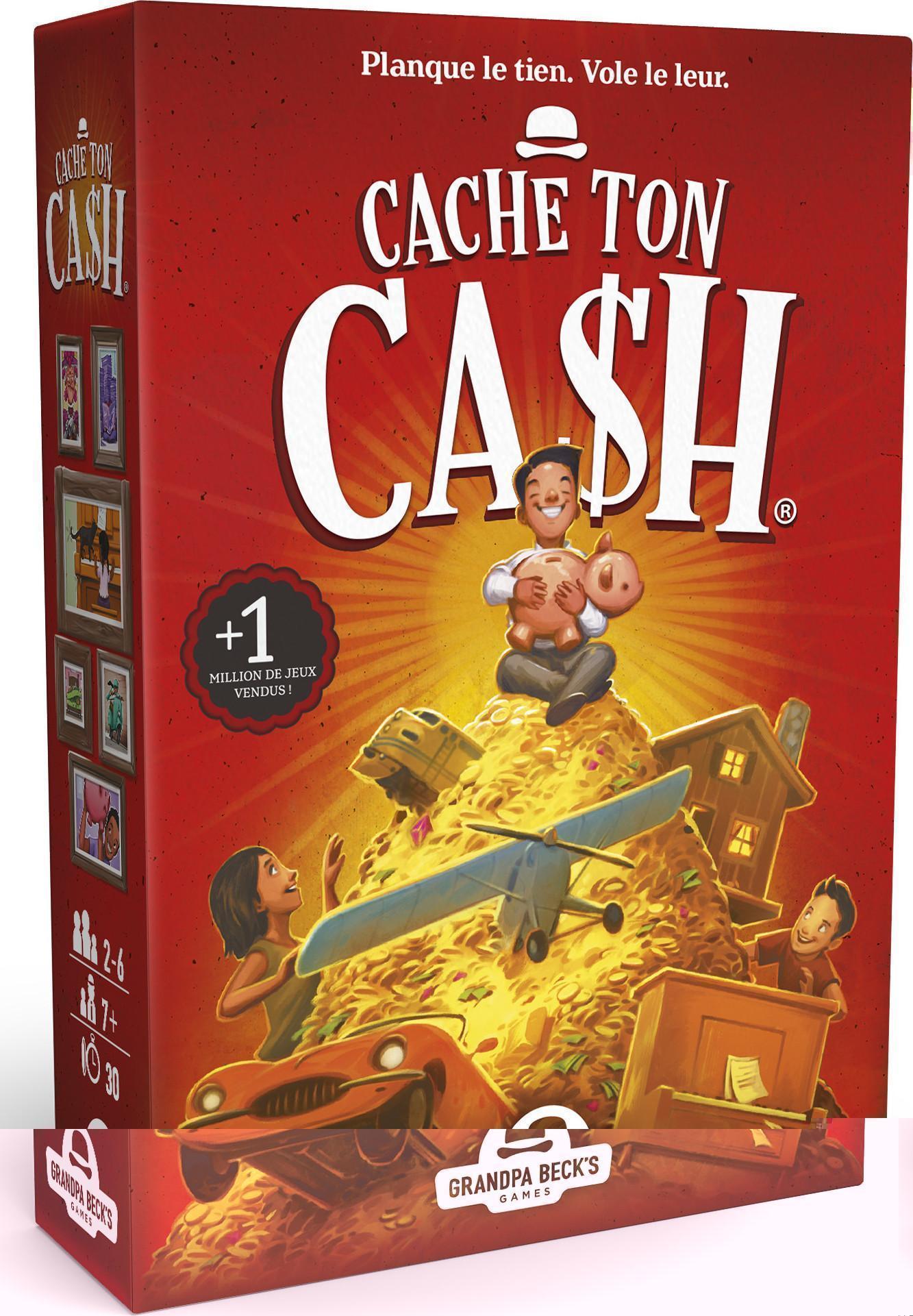 Tente de devenir le premier millionnaire en accumulant des possessions. Empile des sets de cartes devant toi pour accroître ta fortune. Mais attention : le set visible au sommet de ta pile peut être volé. Tu veux garder tes richesses ? Alors, un conseil : Cache ton Ca$h ! À ton tour de jeu réalise une des actions suivantes : • Constituer un set : associer des possessions identiques. • Défausser : se débarasser d’une carte de ta main, face visible, sur la défausse. • Lancer un défi (tentative de vol) : poser une carte correspondant à un set - ou un joker - devant le joueur que tu souhaites défier. Le défenseur peut protéger son set en jouant une possession correspondante ou un joker de sa main et ainsi de suite. Si le lanceur du défi gagne, il prend le set. Si le défenseur gagne, il le garde. Le vainqueur conserve également toutes les cartes utilisées au cours de la confrontation. Quand la pioche est épuisée, le jeu continue jusqu’à ce que chacun ait joué toutes les cartes de sa main et la manche se termine. Chaque joueur calcule son score en additionnant la valeur des cartes de sa pile et la deuxième manche commence. Le premier joueur à atteindre un total de $1000K remporte la partie.
