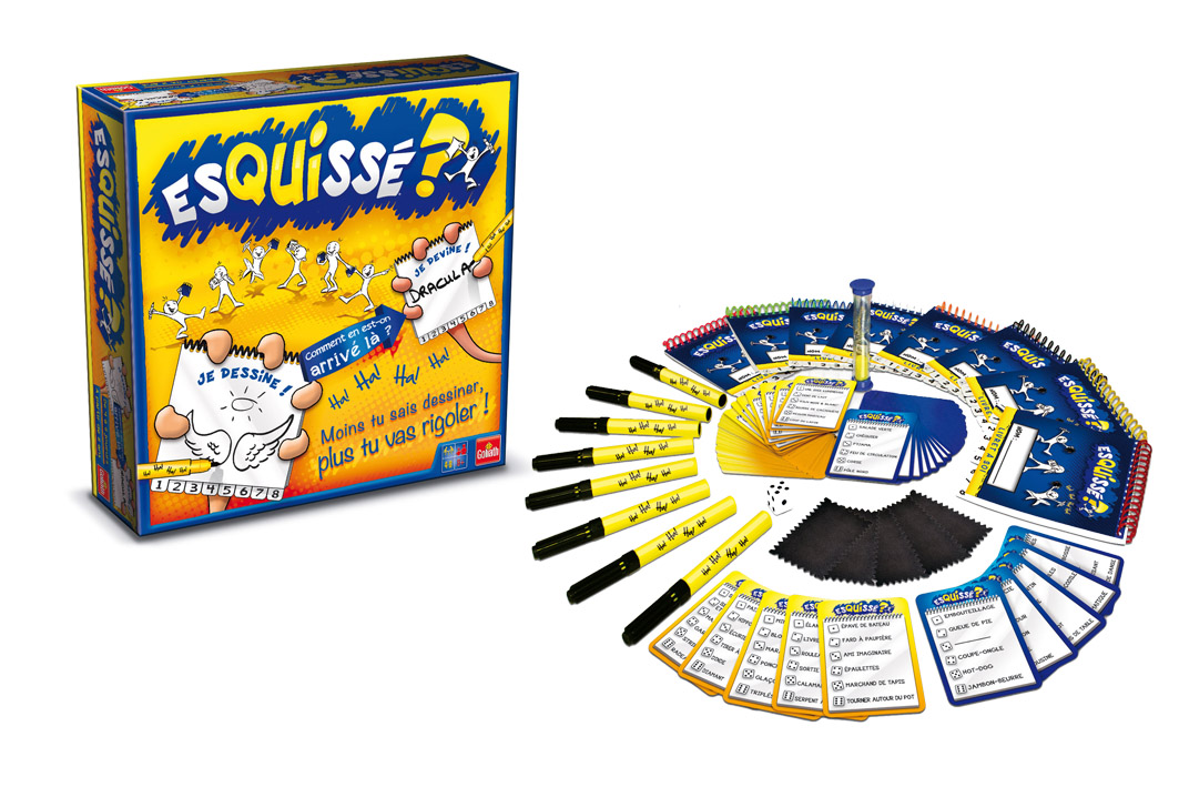 ESQUISSÉ ?, c’est LE jeu d’ambiance par excellence ! Tout le monde connaît le téléphone arabe… Mais que se passerait-il si la parole était remplacée par des dessins ?! Comment des ailes d’anges peuvent se transformer en Dracula ?! Comment Napoléon peut-il devenir une peinture rupestre ?! La réponse en images avec ESQUISSÉ ?… Et si vous ne savez pas dessiner ? Encore mieux ! La rigolade est assurée… Ce qui, pour vous, semble être un trait de génie, Sera pour vos amis le début des ennuis !!! Quiproquos… Rigolade… C’est sûr vous allez vous retrouver dans la panade !!! Ce jeu est tellement addictif qu’une fois que l’on a commencé, on ne peut plus s’arrêter de jouer ! ESQUISSÉ ? a remporté le Grand Prix du Jouet 2012 dans la catégorie Jeu d’Ambiance ainsi que le Coup de Coeur des Ludothèque 2012.