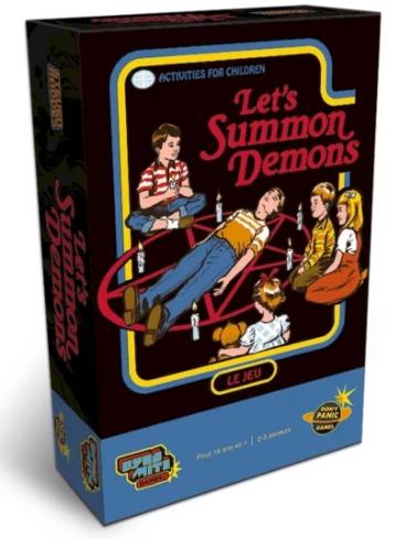 Saurez-vous invoquer les plus puissants des Démons ? Les enfants du quartier s’ennuient rapidement le mercredi après-midi… Pourquoi ne pas leur proposer une activité adaptée à leur âge ? Invoquer des démons ! Ça a l’air fun : collecter des âmes, recruter des enfants et des animaux du voisinage… mais ne vous attachez pas trop à vos nouveaux amis car vous devrez rapidement les sacrifier pour invoquer de très méchants démons ! Soyez le premier à invoquer 3 démons tout en ayant 10 âmes dans votre réserve pour gagner la partie. Plongez dans l’univers rétro, hilarant et décalé de Steven Rhodes !
