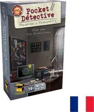 Dans cette première enquête de la série Pocket Detective, il vous faudra résoudre le meurtre d’un des chercheurs de l’université ! En rassemblant les indices, en examinant les lieux mais aussi en interrogeant témoins et suspects, à vous de prendre les bonnes décisions pour arrêter le coupable et résoudre l’enquête ! Dans ce jeu de cartes coopératifs, récoltez les bonnes informations et tentez ensemble de les associer pour découvrir le coupable et le mobile de crime le plus rapidement possible !