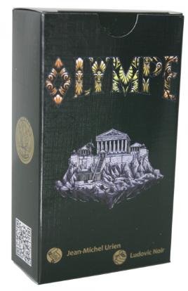 Olympe est un jeu de cartes à plis qui reprend les grandes lignes de ces jeux traditionnels, par contre il les revisite complètement. Les Dieux grecs vont se mesurer les uns aux autres pour prendre la place du Dieu des Dieux, Zeus. Celui-ci, ayant œuvré des milliers d’années, a décidé de prendre sa retraite et veut trouver un remplaçant digne de lui. Vous incarnerez l’un de ses enfants : Artémis, Hermés, Héphaïstos, Dionysos ou Athéna. Objectif : convertir un maximum d’adeptes à votre cause. Vous jouerez vos 16 cartes, regroupant différents personnages, adeptes et monstres. La particularité par rapport à d’autres jeux de cartes à plis se trouve au niveau de l’atout. En effet, celui-ci est de la couleur de celui qui engage le pli, une mécanique originale qui demandera un temps d’adaptation mais qui vous amènera à une stratégie particulière pour accéder au trône Ultime ! De plus, un Monstre mythologique rôde pour dévorer vos adeptes, saurez-vous le contrer ? Version petite boite avec règle classique uniquement ( 85 cartes et une règle Français / Anglais )