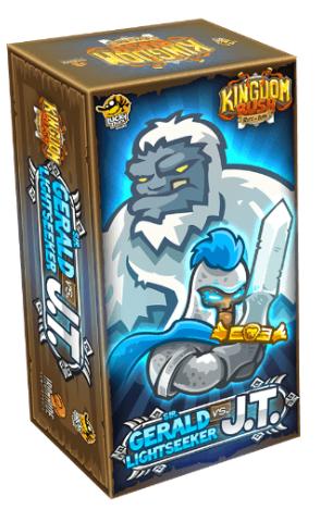 Dans l’extension Sir Gerald Lightseeker contre J.T., les joueurs retrouvent Sir Gerald et l’aident à arrêter l’abominable nouveau Boss J.T. ! Prenez le contrôle de Sir Gerald en tant que nouveau héros jouable à travers quatre nouveaux scénarios et affrontez l’énorme miniature de 80 mm de J.T. Les joueurs pourront profiter de nouveaux pouvoirs tels que l’invocation de soldats, mais ils devront également combattre le froid lui-même pour empêcher leurs tours de geler ! Cette extension propose de nouveaux défis tout en ajoutant plus de polyvalence à votre jeu de base Kingdom Rush : Faille Temporelle.