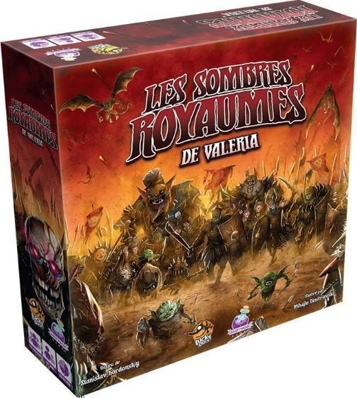 Pendant des années, les humains, elfes et nains ont peu à peu empiété sur vos territoires et éliminé les vôtres dans leur croisade. Ils ont construit des citadelles, des forts, et des villages en vous poussent en même temps vers les ténèbres... Le temps est venu de rallier vos troupes, de leur rendre la monnaie de leur pièce et de ramener à sa juste valeur le règne des Sombres Royaumes ! Vous êtes un Gardien affamé par la destruction de Valeria. Vous devez déjouer les autres Gardiens pour gagner le droit de commander une armée digne des Sombres Royaumes. Visitez les tombeaux pour obtenir des sbires, de la magie, des gemmes et de l’or pour alimenter votre machine de guerre. Envoyez vos monstres à la bataille et conquérez les territoires pour gagner des points de victoire. Le joueur avec le plus de points de victoire à la fin de la partie l’emporte ! A votre tour, vous devez déplacer votre Gardien de son emplacement actuel vers un nouveau. Quand votre Gardien pénètre dans l’un des 5 tombeaux, vous prenez d’abord l’un des dés disponibles dans ce tombeau et le placez sur votre plateau joueur, puis effectuez l’action associée à ce tombeau. Il y a 5 types de troupes (couleurs de dés) dans le jeu : Gobelin (vert), Orc (rouge), Squelette (Blanc), Gargouille (violet) et Gnoll (marron). Envoyez votre Gardien dans le Campement sur votre plateau personnel pour utiliser vos dés de sbires et résoudre un plan de bataille, puis placez les jetons de victoire sur votre plateau campagne personnel.