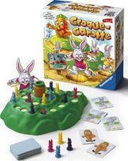 Le plateau représente une colline sur laquelle monte un chemin aboutissant à une magnifique carotte. Quel lapin parviendra le premier à atteindre cette carotte ? Chaque joueur reçoit 4 lapins. A son tour de jouer, chacun tire une carte et fait avancer sur le chemin un de ses lapins du nombre de cases indiqué. Mais attention, il ne faut pas avancer n’importe quel lapin car toutes les cases ne sont pas aussi sûres. Si la carte tirée est une carte carotte, le joueur doit dans ce cas faire tourner d’un cran la carotte figurant au sommet de la colline. Souvent, cette manipulation entraînera l’apparition d’un trou au niveau d’une des cases entraînant la perte du lapin susceptible de s’y trouver.