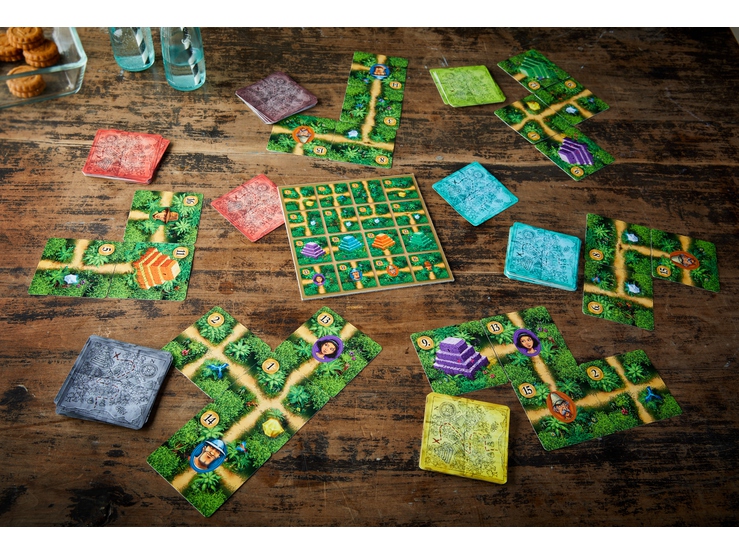 Les joueurs sélectionnent stratégiquement deux cartes de sentier pour évincer les autres joueurs : celui qui a la plus petite somme perd une carte ! A l’aide de ces cartes, ils forment un réseau de sentiers optimal pour relier leurs aventuriers aux temples. Qui guidera le mieux ses aventuriers à travers la jungle ? Pour gagner, il faut récupérer les précieux trésors et marquer des points en reliant le plus de temples possible.