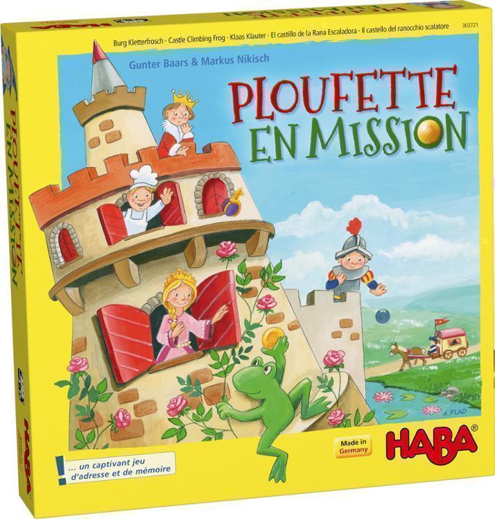 Et plouf ! Depuis sa fenêtre, un habitant du château a encore fait tomber quelque chose dans l’étang. Sa bille dorée manque à la princesse, le magicien cherche désespérément sa boule de cristal et le cuisinier a perdu son chou. Mais que vont-ils bien pouvoir faire ? Ploufette, la grenouille qui sait grimper le long des murs, est la seule à pouvoir récupérer leurs objets. Sa mission est complexe : retrouver le propriétaire de chaque objet et escalader les murs de la tour pour lui ramener l’objet. Ploufette a besoin de votre aide ! Les joueurs doivent ouvrir une fenêtre pour retrouver l’habitant concerné, puis faire grimper la grenouille jusqu’à lui en manœuvrant habilement les cordelettes (mais sans faire tomber la bille dans un mauvais trou du mur). Avec beaucoup d’adresse et de la mémoire, celui qui rapportera le plus d’objets remporte la partie.