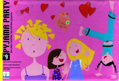 Pyjama Party se donne une apparence de jeu pour les filles lors des soirées entre amies mais est surtout un ensemble de cartes permettant de nombreuses choses. En partant du classique jeu des 7 familles pour aller jusqu’à un jeu d’improvisation et de dessin via les nombreuses cartes vierges fournies.