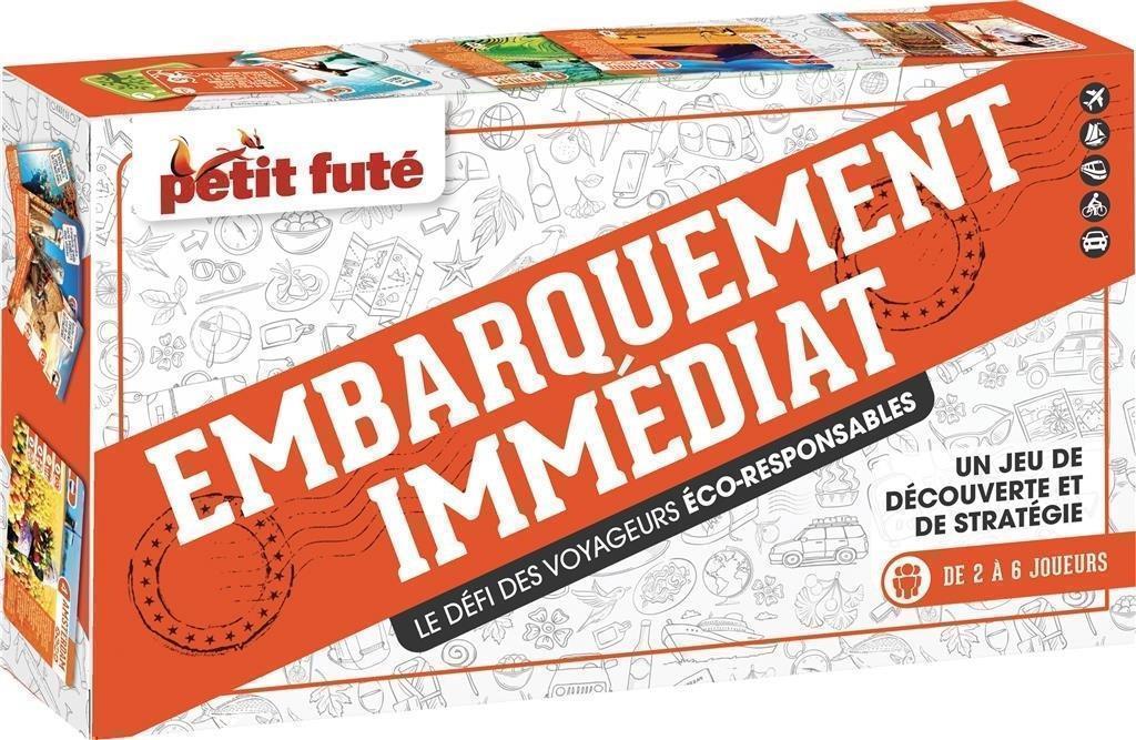 Embarquement immédiat est le jeu de société du Petit Futé, inspiré par les voyages à travers le monde. L’objectif est d’utiliser les moyens de transport à disposition, parmi lesquels la voiture, le vélo, le train, l’avion et le bateau, pour visiter l’une des 24 destinations proposées, tout en surveillant de très près leur impact écologique. Lorsqu’une destination est ouverte, les joueurs multiplient les expériences de voyage. Il peut s’agir de visites de monuments et de musées, de séances sportives, de moments autour de la gastronomie ou bien encore d’art et de la culture. Toutes ces expériences rapportent des points, et il faut en récolter le maximum pour prendre la première place. Cependant attention, il faut toujours veiller à gérer au mieux son empreinte carbone. Au cours du jeu, de nombreux défis éco-responsables sont à relever. Combinaisons de cartes, rebondissements et autres retournements de situations, Embarquement immédiat est bien plus qu’un simple quiz, c’est un véritable jeu de stratégie. Il faut savoir garder sa concentration, mais les fous rires sont également garantis. On apprend de plus plein de choses sur les destinations, au point de réveiller les envies d’aller parcourir le monde tout en étant un voyageur responsable. Les cartes contiennent également des QR codes pour en apprendre plus sur les lieux visités !
