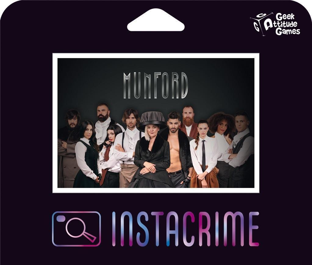 Instacrime est une série de jeux coopératifs basés sur des enquêtes policières à résoudre uniquement à l’aide de photographies. Le premier cas nous plonge dans la réunion annuelle d’une riche famille, les Munford, qui se termine mal... L’observation, la communication et la déduction seront vos seules armes pour résoudre ce crime. Serez-vous capables de retracer la trame des évènements ? Chaque cas d’Instacrime se compose de 12 photographies, chaque joueur ne peut voir que celles qu’il a en main et doit partager ses observations aux autres afin de résoudre le crime.