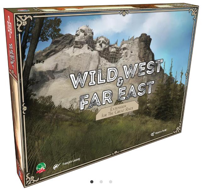 L’extension Wild West & Far East contient le double plateau géant de The Great race 2, pour les joueurs possédant déjà le 1 et ne voulant pas réinvestir dans une boîte complète.