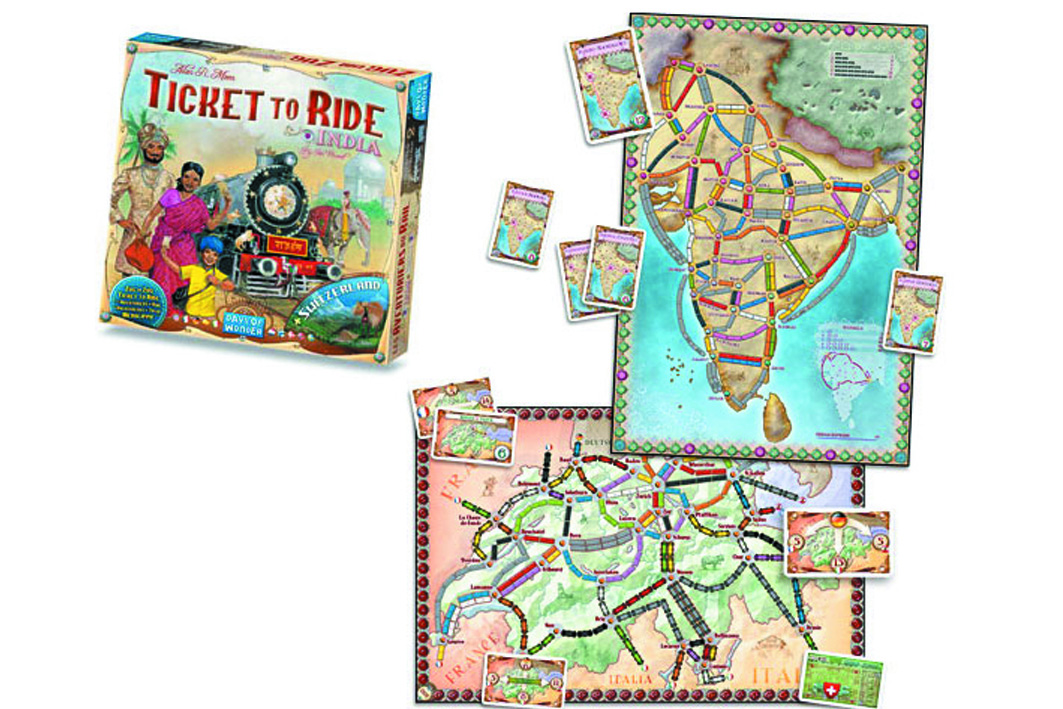 Inclut également le plateau de la Suisse d’Alan R. Moon, conçu spécifiquement pour 2 à 3 joueurs et rendu célèbre par le jeu Ticket to Ride Online ! Découvrez les vertes vallées et les montagnes suisses, tout en goûtant les charmes des pays voisins.