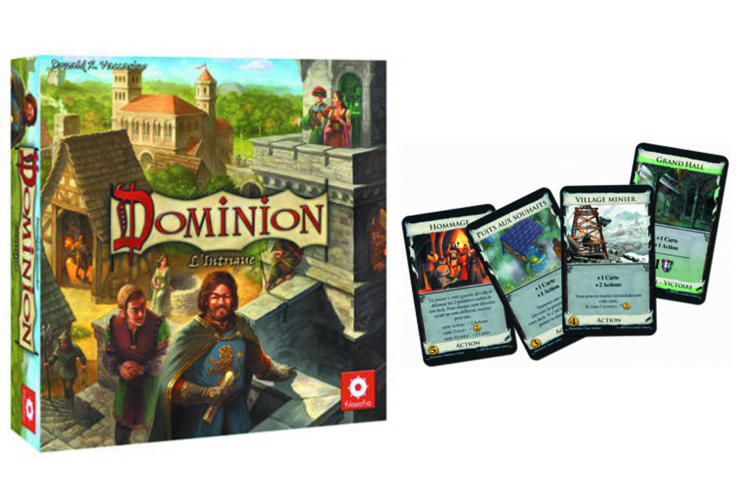 Dominion L’Intrigue, première extension de Dominion, propose 25 nouvelles cartes Action qui bousculeront les habitudes des joueurs les plus chevronnés. Le mot d’ordre de cette extension : plus d’interactivité ! Vous y découvrirez ainsi des cartes telles que « Mascarade », qui invite tous les joueurs à passer une carte de leur main au camarade assis à leur gauche.