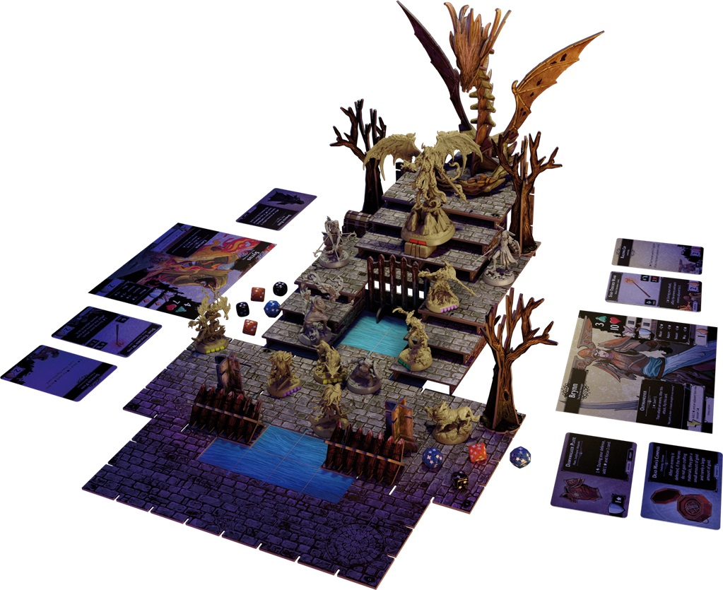 La Légende des Siècles ! Plongez dans une histoire épique, affrontez le mal qui menace Terrinoth, faites évoluer votre personnage et ses compagnons, vivez une geste à nulle autre pareil. Une campagne, 16 scénarios, 40 figurines, 46 pièces de terrain en 3D et des dizaines d’heures de jeu… Descent : Légendes des Ténèbres est une expérience ludique unique ! Ce jeu exceptionnel est le summum de l’exploration de donjon et de la coopération. Son matériel innovant est parfait pour une immersion complète. Les multiples défis qu’il propose feront le plaisir des joueurs en attente de sensations fortes, grâce à un ensemble de règles accessibles, qui favorisent la stratégie de groupe. L’application gratuite est un outil essentiel, car elle prend en charge les situations les plus complexes, de la gestion d’effets de statuts aux tactiques évolutives des ennemis, en passant par le développement de vos Héros. Héros qui auront accès à des actions entre les scénarios… Dont de la fabrication, de l’acquisition auprès de marchands et de l’amélioration d’équipements !