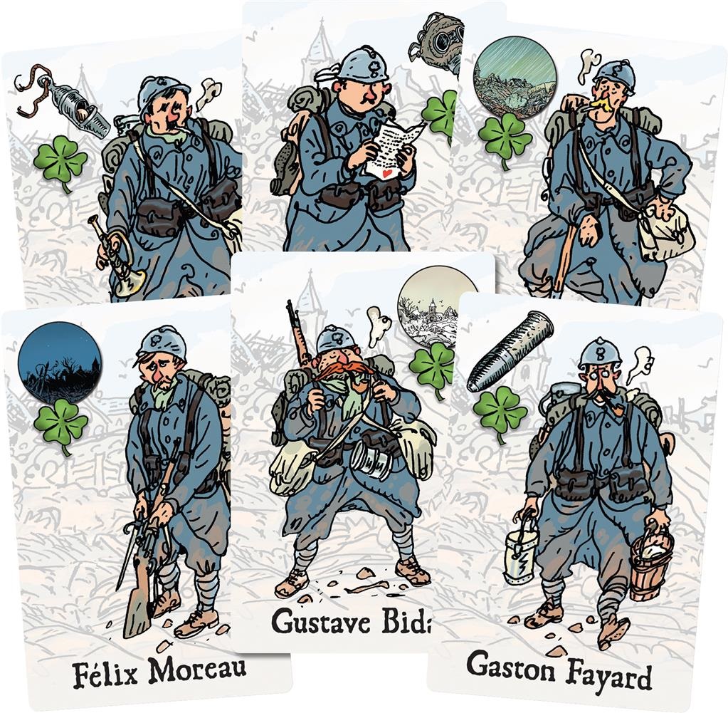 Incarnez un groupe de Poilus dans le quotidien des tranchées. Saurez-vous coordonner vos actions pour traverser les effets dévastateurs de la Grande Guerre ? “Les Poilus” est un jeu coopératif. Les joueurs gagnent ou perdent ensemble. Le juste équilibre entre la prise de risque individuelle et collective conduira au succès. Véritable challenge de groupe, ce jeu intense et immersif est aussi un hommage à nos aïeux. Contenu 6 cartes Poilu, 59 cartes épreuves, 16 tuiles Soutien, 5 jetons Discours, 1 marqueur Chef de Mission, 1 carte Paix, 1 carte Monument, 1 Aide de Jeu, 1 livret de règles.