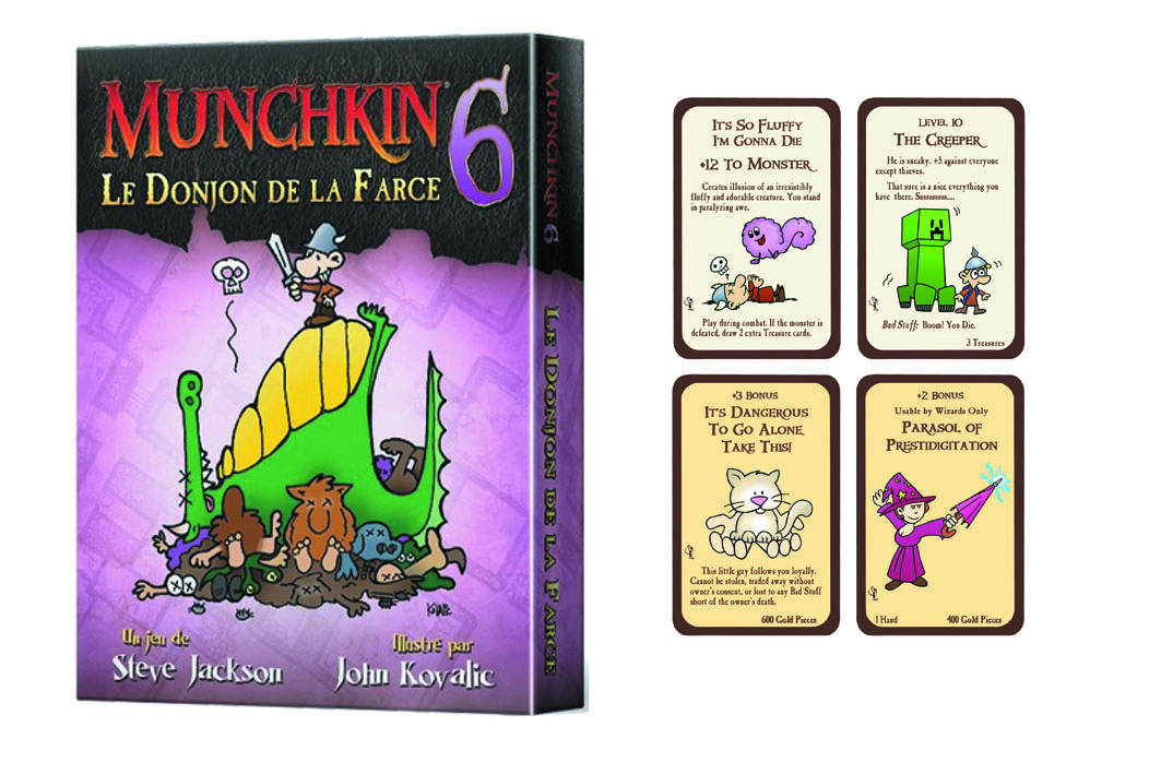 Le Donjon de la Farce introduit une nouvelle donnée dans Munchkin. Maintenant, vous pouvez entrer dans le Donjon de la surabondance elfique ou traverser un Portail menant au Donjon de l’effet manga libidineux. Vous pouvez même les explorer tous les deux en même temps !