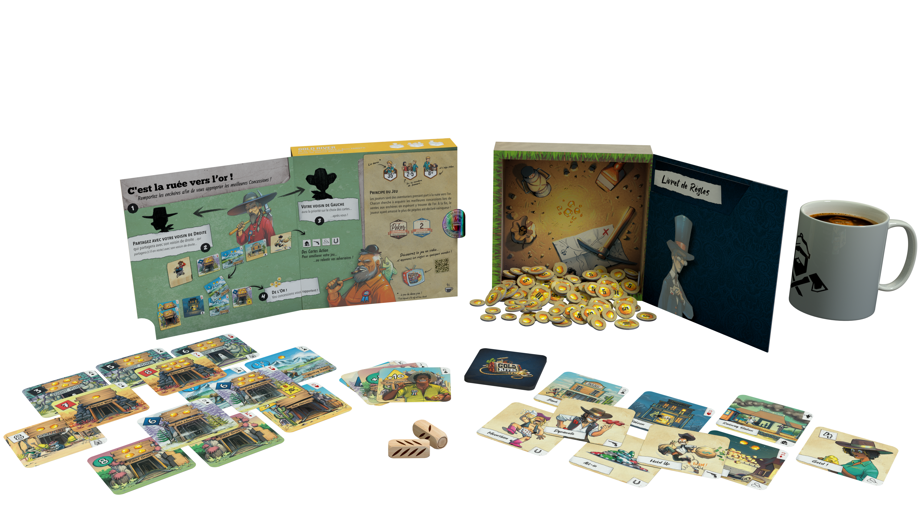 Vous incarnez des aventuriers prenant part à la ruée vers l’or. Faites l’acquisition des meilleurs filons lors de ventes aux enchères puis, avec de la chance aux dés, vous y trouverez de l’or !