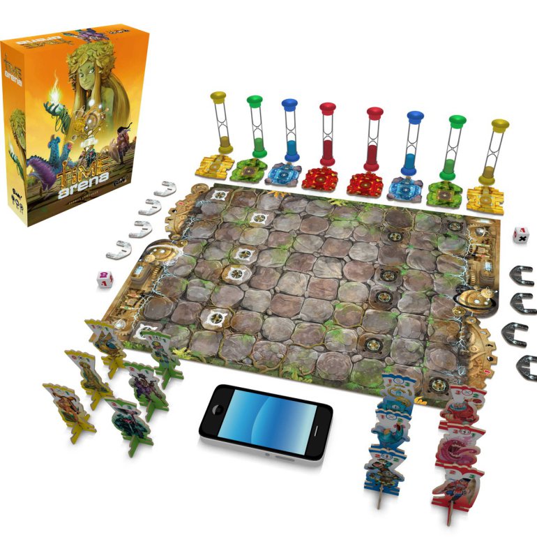 Time Arena est un jeu d’affrontement pour 2 joueurs ou par équipe, mêlant sensation de jeux de plateau et de jeux vidéo grâce à une application compagnon. Prenez le contrôle de 4 combattants pour aller détruire le Totem adverse. Mais attention, votre temps est compté, vous n’avez que 5 minutes. Et si le chronomètre tombe à 0, la partie est perdue !