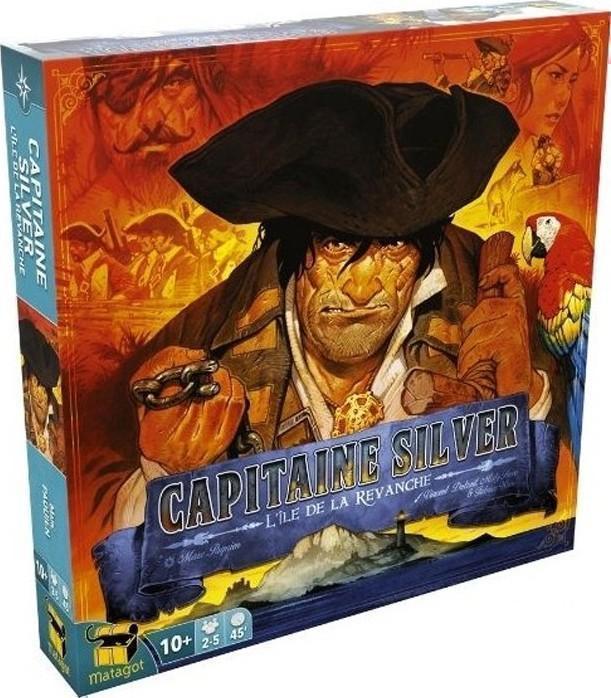 L’île au Trésor – Capitaine Silver : L’Île de la Revanche Après une première aventure pleine de rebondissements, le capitaine Silver se réfugie sur une île qu’il connait bien : l’Île de la Revanche ! Hélas, une garnison anglaise contrôle ce petit bout de terre et, peu après y avoir dissimulé un précieux butin, Silver se retrouve encore une fois mis aux fers. Avec une nouvelle île à découvrir et un nouveau module « Les ruses de Silver » intégrant de nouvelles cartes pour Long John Silver (militaires corrompus, météo inquiétante, double fantomatique…), à vous de déjouer ses ruses pour parvenir à vos fins avant qu’il ne s’échappe des geôles anglaises !