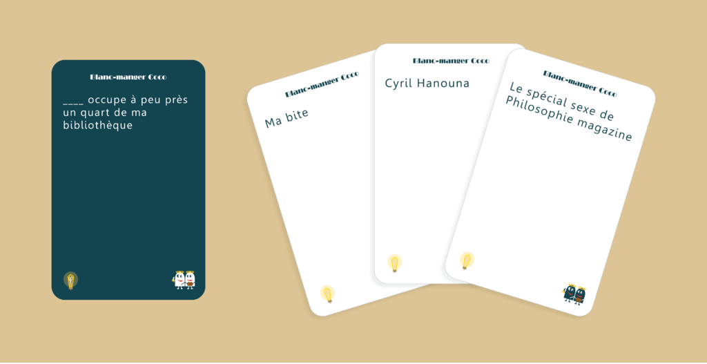La Culture G est une extension de Blanc-manger Coco contenant 200 cartes, dont 160 réponses et 40 questions. La thématique du jeu est la Culture Générale, au sens large. Le jeu s’adresse évidemment aussi bien aux pseudo-intellectuels qu’aux ignares.