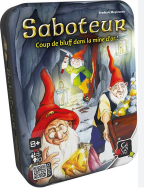 Mineur ou saboteur ? Vous jouerez l’un de ces deux rôles dans ce petit jeu de cartes d’ambiance. Votre rôle est secret et au fur et à mesure que l’on s’enfonce dans la mine, vous tenterez de deviner qui est qui. Il ne faudra alors pas hésiter à ralentir le camp adverse, mais attention de ne pas vous tromper. Saboteur est un magnifique jeu d’ambiance qui rappelle un ’Les loups garous de Thiercelieux’, mais avec un support ludique (cartes) plus présent et moins déroutant. Ce jeu a été élu ’Prix du public de Saint Herblain’ en 2005.