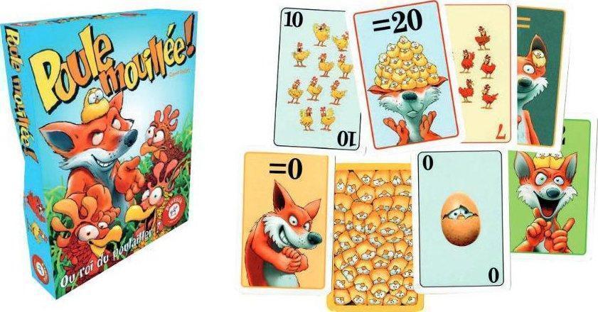 Mélange les cartes et répartis les entre les joueurs. Chacun prend son paquet face cachée. Les poules noires s’additionnent, les rouges se soustraient au delà de 21, et le renard nous réserve ses surprises !
