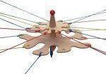 Cet objet est composé d’un support en forme de toupie auquel sont accrochées jusqu’à 10 ficelles qui pourront être tendues chacune par un participant différent. Ceux-ci doivent se coordonner pour reproduire des modèles sur une surface horizontale, soit directement avec l’axe sur une couche par exemple, soit sur papier, avec un feutre ou un crayon cire (fourni) attaché à l’axe. Au dessus de 10 joueurs, il est possible de fixer une ou plusieurs ficelles.