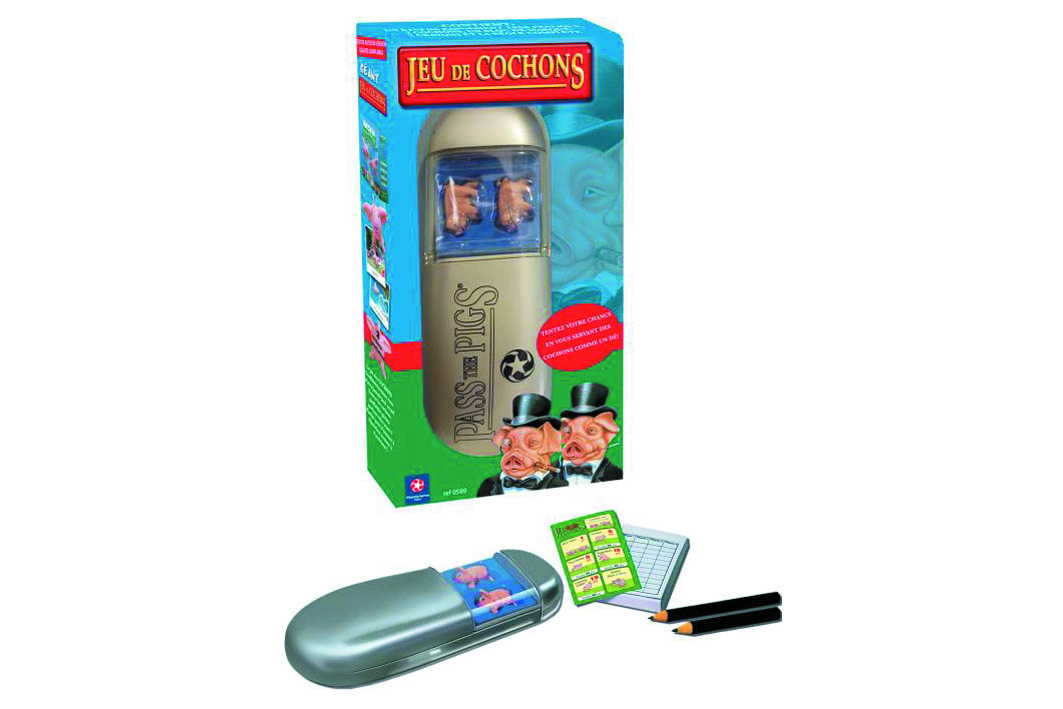 Dix fois plus drôle qu’un jeu de dés ! A la place des dés, deux cochons dont les positions finales, toutes plus drôles les unes que les autres, vous raporteront des points. Entre fou rires et prises de risque, ’Le jeu de cochons’ est le ’jeu apéro’ par excellence !