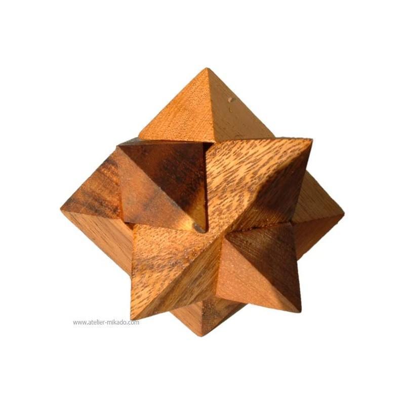 Reconstituer l’étoile avec les 6 pièces de bois. difficulté 3/5 Dimensions : diamètre 9 cm