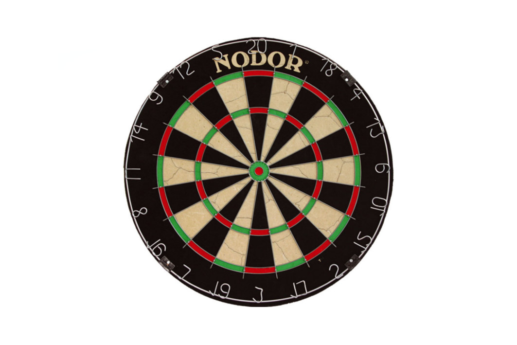 Nodor invente la cible de fléchettes en crin en 1921 et les fabrique d’une qualité inimitable. Celle ci est la plus vendue au monde. Cible homologuée. En Sisal (fibre végétale). Séparation de zones en acier à haute résistance. Épaisseur : 35 mm. Diamètre : 45 cm. Vendue sans fléchettes.