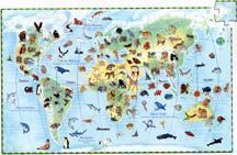 Puzzles mappemonde de 100 pièces, différentes espèces animales que l’on peut trouver à travers le monde + livret explicatif.