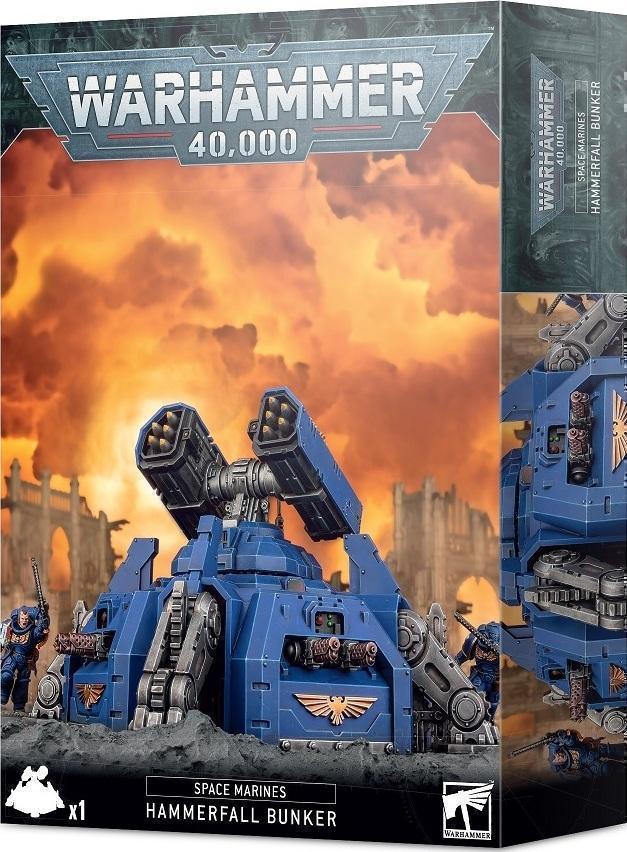 Les bunkers Hammerfall sont lâchés par les vaisseaux space marines de la même façon que les Modules le Largage. Éléments d’interdiction automatisés grâce à un équipage de Servitors câblés, ils remplissent diverses fonctions, comme sécuriser des têtes de pont, repousser les assauts et semer la mort derrière les lignes adverses. Le Bunker Hammerfall offre à votre armée de Space Marines une puissance de feu sans concession là où elle vous est le plus utile. En plus de son lance-missiles Hammerfall, chaque bunker est doté d’une bordée de lance-flammes lourds ou de bolters lourds Hammerfall, afin de semer la désolation chez les assaillants quel que soit leur axe d’approche. Ce kit permet d’assembler un Bunker Hammerfall. Il propose le choix entre une une bordée de lance-flammes lourds ou de bolters lourds Hammerfall, et il est fourni en 64 composants plastique.
