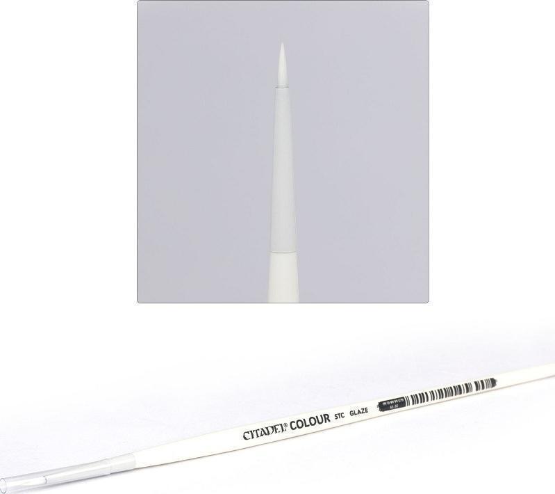 Les glacis sont d’excellents moyens d’ajouter de la définition à un travail de peinture achevé, et afin d’éviter les retouches malaisées, nous avons conçu le pinceau Citadel Colour STC Glaze en visant un maximum de rétention de la forme de la pointe. Ainsi, vos glacis se déposent pile où vous le voulez, et les poils de taille moyenne se chargent d’une quantité de peinture sans excès, de sorte à éviter de trop en mettre dans les creux. Il s’agit d’un pinceau Citadel STC, dont les poils sont faits des meilleures fibres 100% synthétiques que Games Workshop ait jamais produites, afin de mieux garder une forme optimale et empêcher que la pointe se courbe. Ce pinceau a été conçu avec soin pour appliquer précisément vos glacis, sans déborder, et c’est un excellent accompagnement pour les pinceaux Citadel normaux, conçu pour convenir parfaitement à la gamme de peinture Citadel Colour.