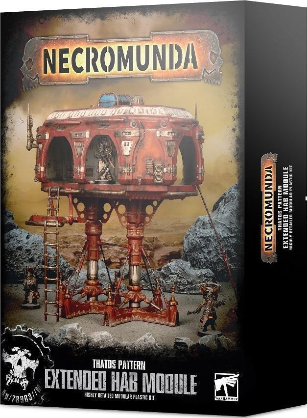 Les désolations de cendre de Necromunda sont un environnement impitoyable, absolument fatal pour ceux qui ne peuvent s’abriter des tempêtes toxiques et de la faune enragée. Les gangs qui opèrent dans les Grandes Désolations Équatoriales, et les Nomades des Désolations de Cendre qui y vivent, emploient des modules d’habitation modèle Thatos pour se protéger et communiquer. Les plus grandes de ces structures sont les modules d’habitation étendus, souvent dévolus aux membres les plus importants du gang et servant de bases d’opérations. Ce kit plastique vous permet d’assembler et de personnaliser un Thatos Pattern Extended Hab Module complet. Vous trouverez les options suivantes : - Un assemblage sans colle pour les échelles et le toit, vous permettant d’ajuster votre montage à vos besoins de jeu - Des pilotis pouvant être assemblés à deux hauteurs différentes - Diverses options d’assemblage de portes ouvertes et fermées - Des options comme des arrimages, des câblages, des antennes, et une fenêtre de toit - Un intérieur entièrement détaillé, visible en retirant le toit pour y déplacer les figurines L’Extended Hab Module est entièrement compatible avec tous les kits de terrain Thatos Pattern, vous permettant de bâtir, arranger, étendre un village modulaire ou un QG de gang adapté aux champs de bataille, scénarios, et campagnes de toutes sortes – plusieurs Extended Hab Modules peuvent même être combinés pour créer des tours de différentes tailles. Et vous n’avez pas à vous limiter à Necromunda – ce terrain est tout aussi adapté aux parties de Kill Team et de Warhammer 40,000. Ce set se compose de 122 pièces plastique. Cette figurine est fournie non peinte et nécessite assemblage.
