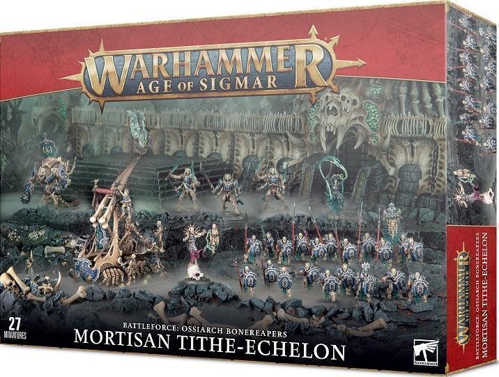 Les Collecteurs Ossiarques arrivent avec leur splendeur macabre, car ils sont la matérialisation de la volonté de Nagash. Tout ce qu’ils tuent leur appartient, corps et âme. C’est une force militaire à nulle autre pareille, organisée et efficace, commandée par des généraux créés par le Seigneur Suprême des Morts-vivants, à qui il prête une mesure de son pouvoir nécromantique. Chaque chose vivante qui meurt dans les Royaumes Mortels appartient à Nagash, du moins c’est ce qu’il pense. S’il ne peut pas avoir ces âmes, alors il aura leurs os pour construire ses grandes légions. Les Collecteurs Ossiarques perçoivent cette dîme, souvent par la force, par le biais des échelons qui marchent à la bataille sous le commandement de Mortisans. Les dissidents expirent avec une extrême brutalité, alors que les formations de Gardes Mortek et d’imposants Rôdeurs de la Nécropole marchent inexorablement, regarnis par des Moissonneurs Gothizzar à mesure qu’ils tombent. Récoltez une abondante dîme d’os avec cette puissante collection. Cette boîte inclut : 1x Modeleur d’Os Mortisan 1x Faucheur d’Âmes Mortisan 1x Rampeur Mortek 1x Moissonneur Gothizzar 3x Rôdeurs de la Nécropole (peuvent être assemblés alternativement en Gardes Immortis) 20x Gardes Mortek Ces unités sont fournies avec 1x socle ovale de 105x70mm, 1x socle ovale de 170x109mm, 3x socles ronds de 50mm, 2x de 32mm, et 20x de 25mm. Ces figurines sont fournies non peintes et nécessitent assemblage – nous recommandons d’employer la Colle Plastique Citadel et la peinture Citadel.
