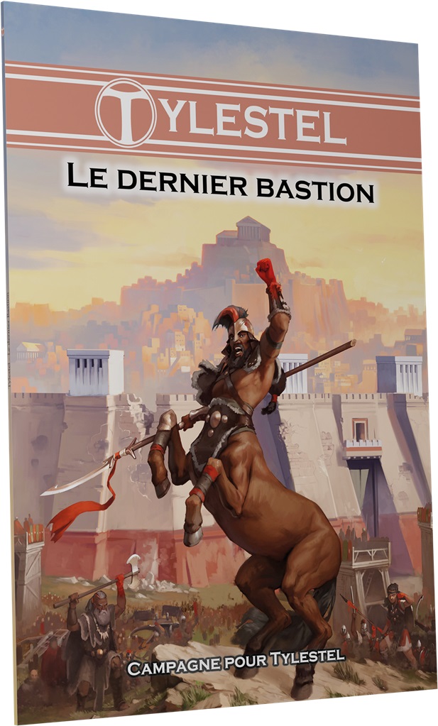 Dans « Le Dernier Bastion », les Héros doivent assurer la prospérité de la cité d’Aram, assiégée par une armée coalisée de Mosaliens galvanisés et revanchards. Derrière cet affrontement se cache une querelle entre trois divinités pour le contrôle de la cité, alors qu’un culte des Titans se dissimule dans les ombres, attendant son heure. Sur cinq scénarios, soit une dizaine de séances de quatre heures, entrecoupant enquête, combat et exploration, les PJ seront en première ligne pour décider du sort de la cité. Livre à couverture souple, format A4, de 60 pages environ.