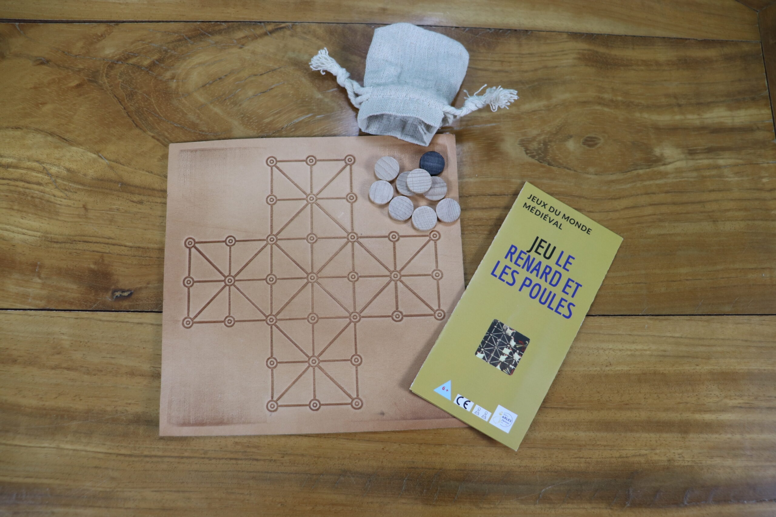 L’originalité de ce jeu repose sur les mécaniques complètement différentes des deux camps s’affrontant sur le plateau. Le renard doit manger un minimum de 7 poules afin de remporter la partie tandis que les poules doivent bloquer le renard afin de l’empêcher d’avancer . Les poules ne peuvent se déplacer qu’en diagonale et ne peuvent jamais reculer. Leur objectif est de coincer le renard, idéalement dans un coin afin de l’empêcher de se déplacer. Le renard doit lui manger un minimum de 7 poules en sautant par dessus les pions afin de remporter la partie. Il est conseillé d’arrêter la partie dès 7 poules mangées par le renard car une fois ce stade dépassé la victoire n’est plus possible pour le camp des poules. Fabrication en France +5ans 10-15min 2 joueurs Un jeu des ateliers Acta Origine : France 13 ème siècle